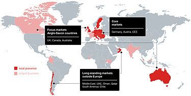 The STRABAG Group, developed from the Austrian company ILBAU and its namesake STRABAG, operates in over 50 countries around the world